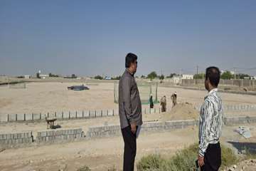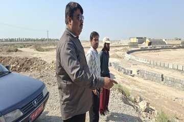 بازدید بخشدار مرکزی گناوه از روند اجرای پروژه چمن طبیعی زمین فوتبال روستای محمدصالحی